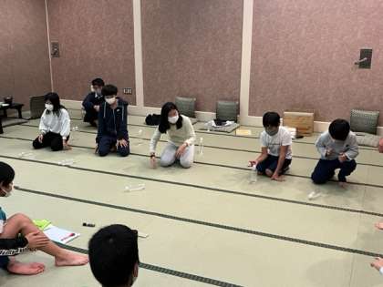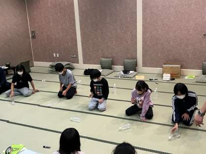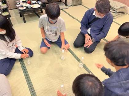 次のゲームは、ペットボトル立てです。器用に立てることがきるでしょうか?