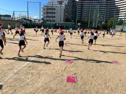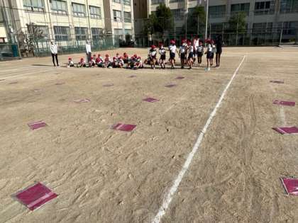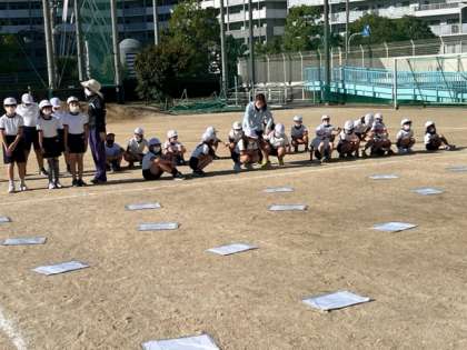 赤と白のカードがたくさん置かれました。子どもたちは合図で一斉にかけ出します。さて、勝敗は当日のお楽しみです。