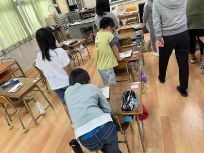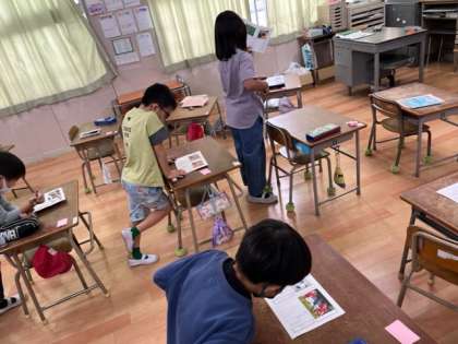 3年生が国語の時間にオリンピック、パラリンピックのパンフレットを作りました。カヌー、車いすバスケットボール、射撃などさまざまな種目を紹介するパンフレットです。お互いに読み合ってよいところを付箋に書いていました。