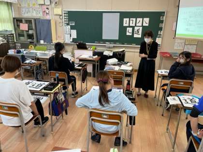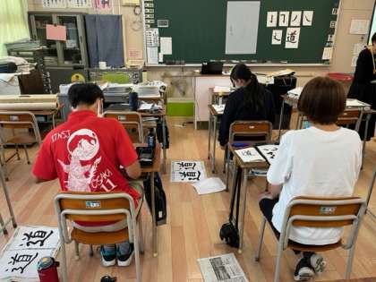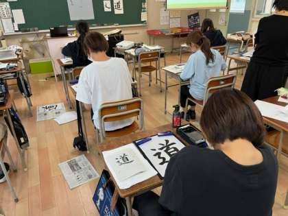先生方が習字の研修会を行いました。講師の先生にお越しいただき、とめ、はね、はらいなどを学びました。明日からの実践に使えます。