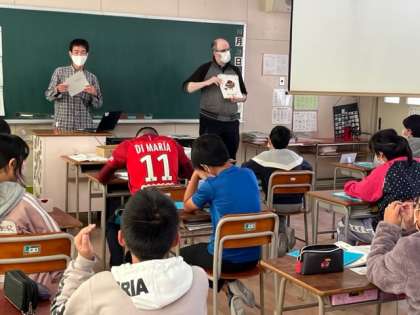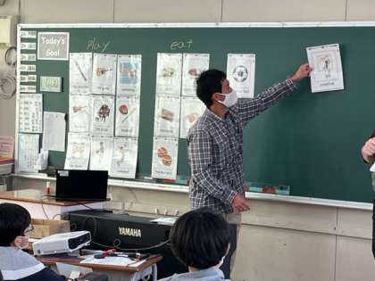 6年生の外国語の学習です。play〜 eat〜 の使い分けを学びました。たくさんの語彙が増えてきてますね。