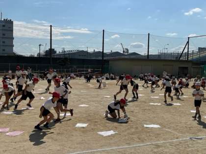 全校競技「赤白めくり合戦」では、全児童参加のカードめくりです。