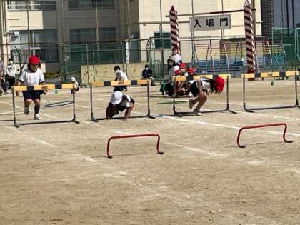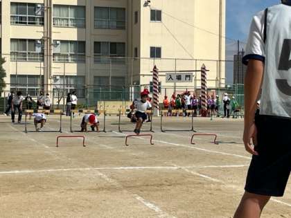 1.2年生の「SGY family」です。障害物をクリアしてゴール目指します。1年生は直線です。