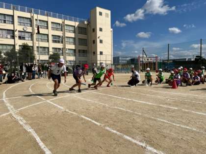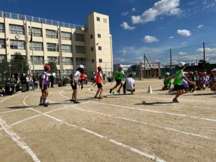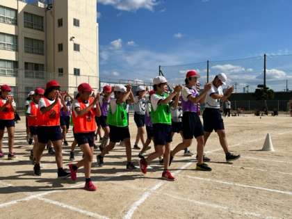 5.6年生のリレー「つなげ!池島スピリッツ!」入場からおしゃれな行進で、バトンパスは大迫力で、さすが高学年です。