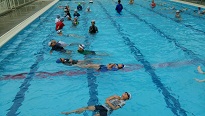 「服をきたまま泳ぐ」体験も6年生が行いました。