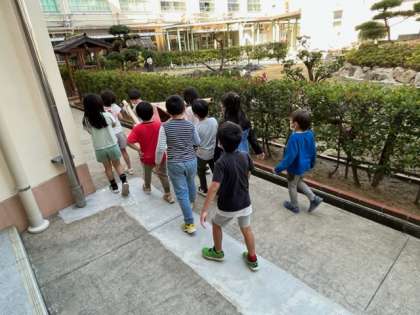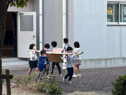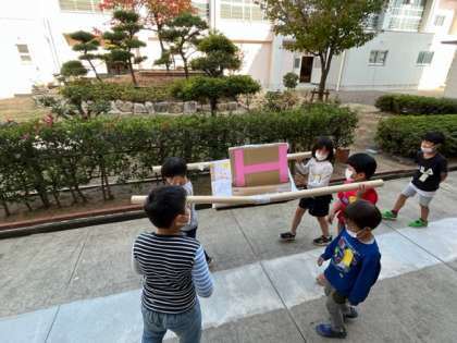 お神輿も繰り出しました。みんなで中庭を3周していました。わっしょいわっしょいの掛け声が元気でした。