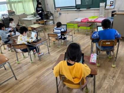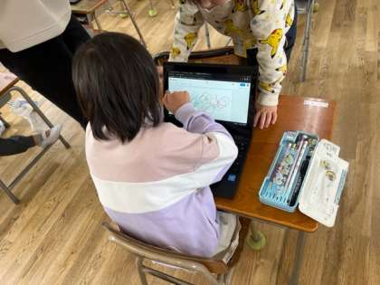 2年生が生活科の時間に収穫のお祭りのために掘ったさつまいもの絵を描いていました。学習端末で描くところが新しいですね。