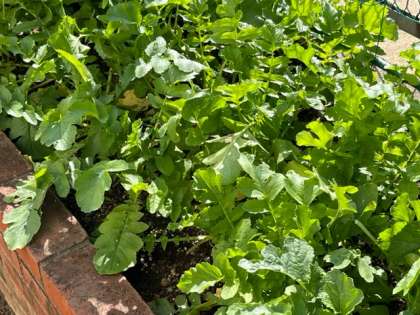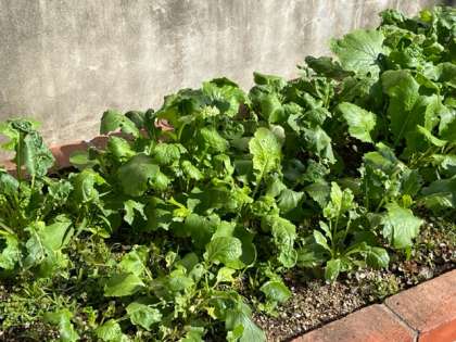 学習園に大根と蕪を植えています。給食委員会が水やりを頑張っています。
