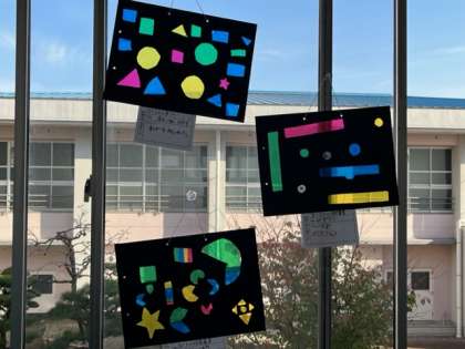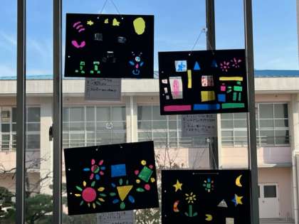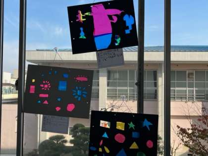 2年生の図画工作の作品です。光を通してきれいなステンドグラスです。