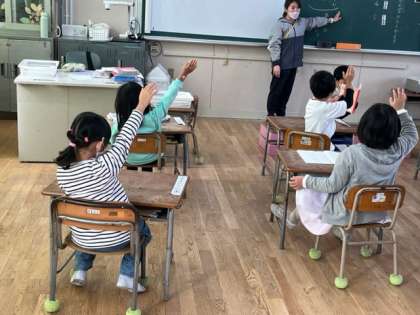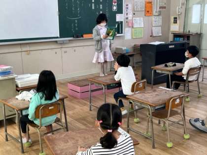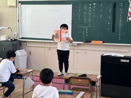 1年生が国語の時間に「とくいなこと」を発表していました。姿勢よく大きな声でハキハキと話せていました。