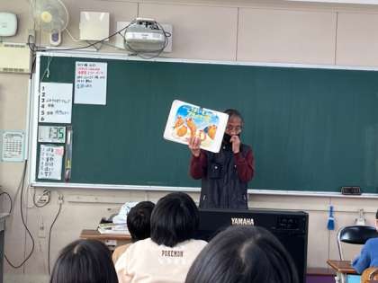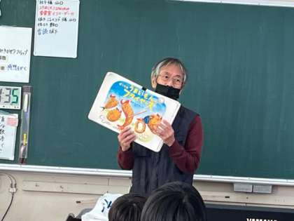 今日は、大阪府のオーサビジット事業で絵本作家の岡田よしたか様に来ていただきました。3年生で読み聞かせをしていただきました。