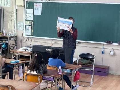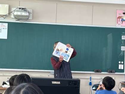 初めに「うどんのうーやん」を読んでもらいました。オープニングでハーモニカの演奏をしてくださいました。大阪弁がとても楽しい絵本です。