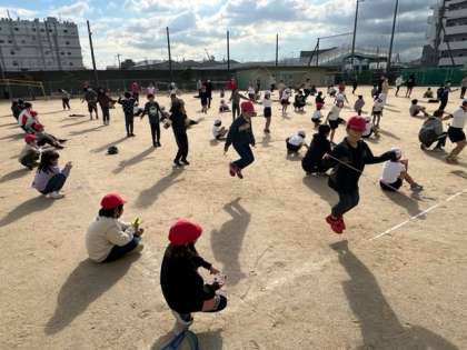 今日からなわとび週間「ぴょんぴょんタイム」が始まりました。何回飛び続けられるかな?