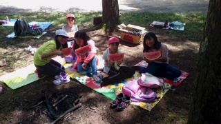 7月25日土曜日午前11時 高丸山下山後、おやつにスイカをいただきました。