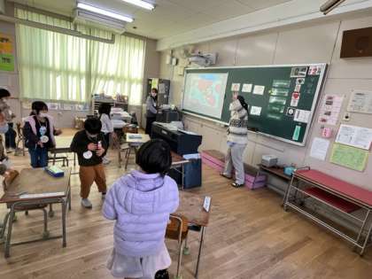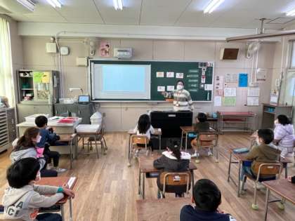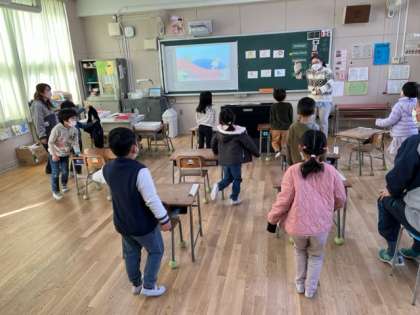 1年生もEnglish time!歌を歌いながら、walk walk jump jump!