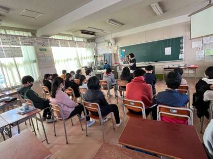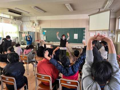 6年生を、「旅学問」などを聞きました。合間に軽く体操もしてくださいました。