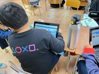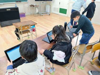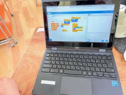 3年生が総合的な学習の時間にscratchを使ってゲームクリエーターになっていました。シューティングゲームを作るすごい子もいます。