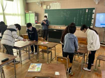 4年生が「百人一首」の カルタ取りをしていました。下の句を覚えている子がたくさんいて、びっくりしました。