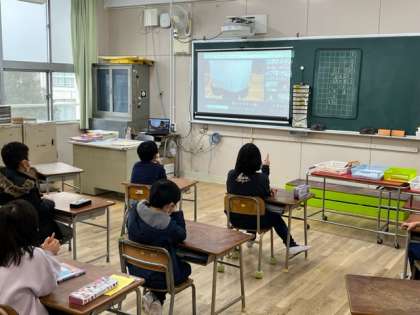 どの教室の子どもたちも、画面に集中していました。楽しいシルエットがたくさんありました。