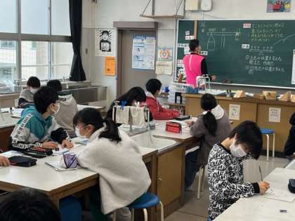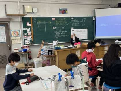 6年生は理科の時間に「てこ」について実験と考察をしていました。支点力点作用点の関係を見つけるようです。