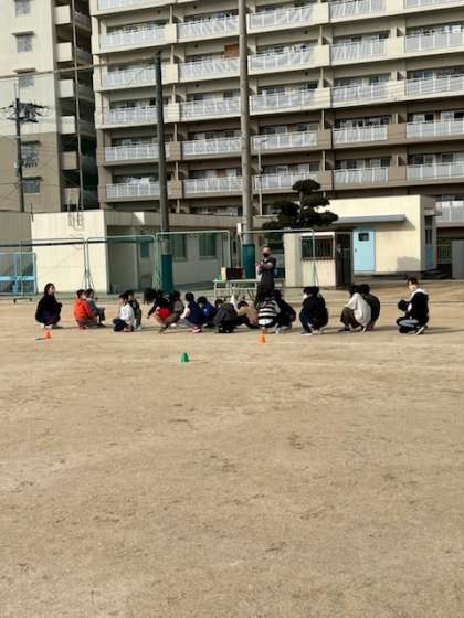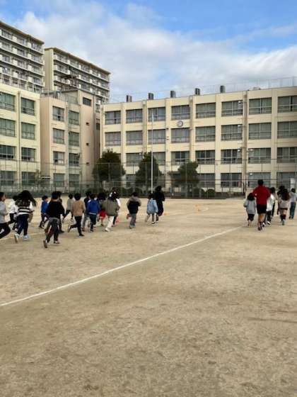 今日から体力つくりの「ランランタイム」の始まりです。今日は、4.5.6年生が走ります。