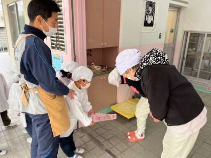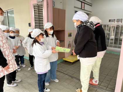 手紙を受け取る時には、給食調理員さんもとても嬉しそうです。