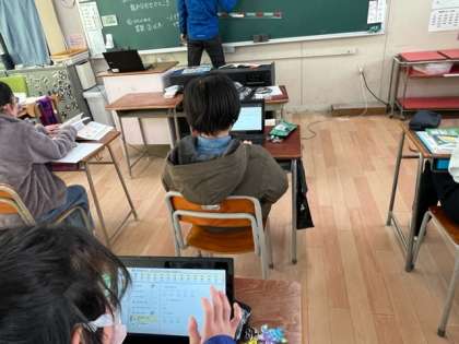 6年生は算数の時間にデジタルドリルをしていました。教科書の問題が終わった人から、デジタルドリルの組み合わせの問題に取り組んでいました。カップをたくさん集めてますね。