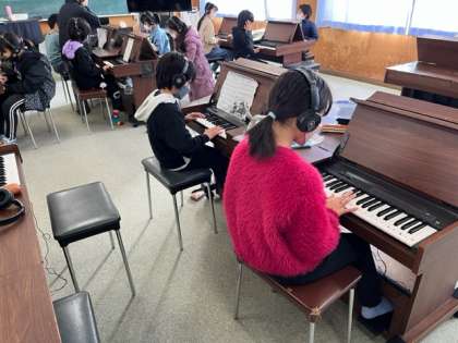 4年生が音楽の時間に「小さな世界」を演奏していました。オルガンで演奏したり、リコーダーで演奏したりしていました。リコーダーはテストかな?