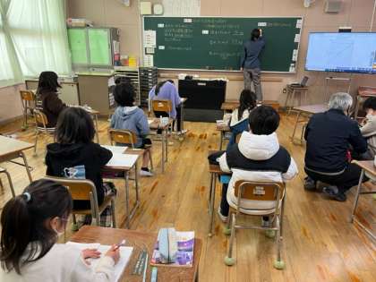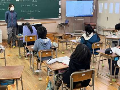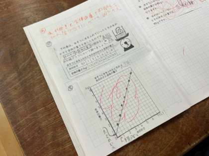 折れ線グラフを使って、時間と量の関係を調べます。4年生が算数の時間に折れ線グラフを書いて調べていました。