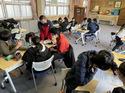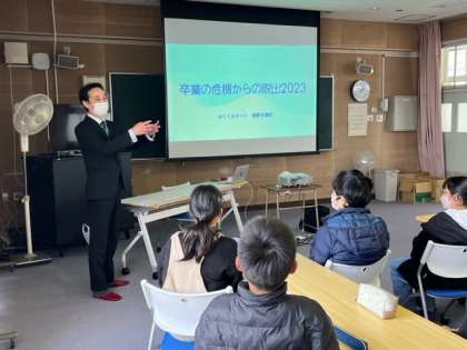 今日は、はぐくみネットの卒業記念の授業です。タイトルは、「卒業の危機からの脱出2023」力を合わせて謎を解きます。