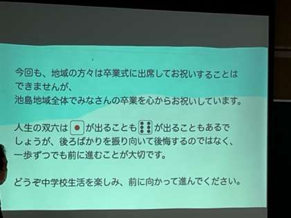 解説をしていただき、最後にはすてきなメッセージを送ってくださいました。子どもたちには、心に残る時間となりました。ありがとうございました。