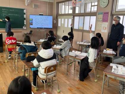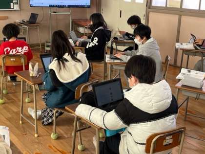 4年生は社会の時間に柏原市のブドウについて調べていました。「先生は、おいしい柏原市のブドウをどうすれば食べられるかな?」という問いに学習端末で調べていました。