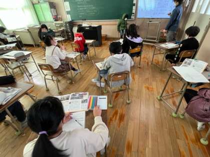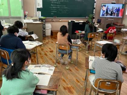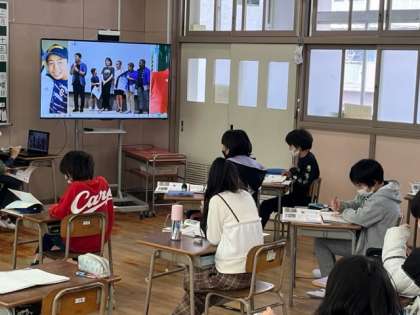 4年生が社会科の学習で、国際交流について調べていました。少年野球チームの国際親善について教科書から見つけていました。