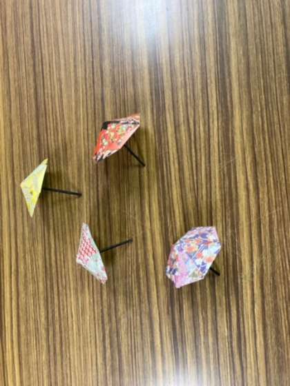 いろいろな道具も見せていただきました。折り紙で作った作品はとてもかわいいです。