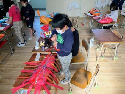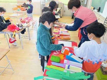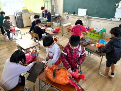 2年生の図工の時間に作っている生き物たちが姿を現しました。こわいのやかわいいのなどいろいろな生き物がいっぱいいます。