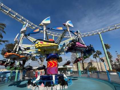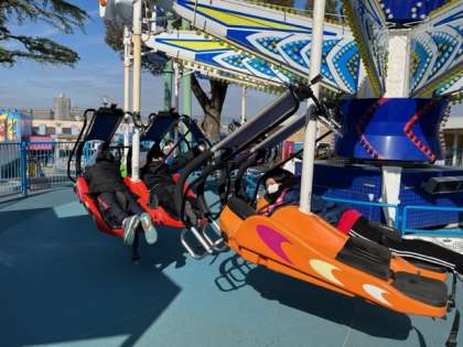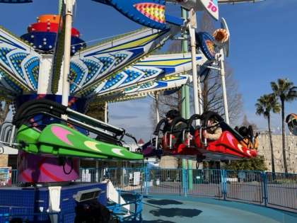 乗り物に乗り始めました。絶叫系に挑みます。今日は40校も来園しているので順番待ちが大変です。