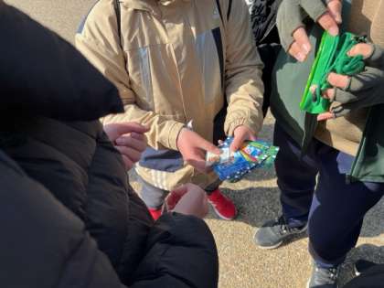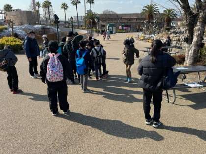 みんな集まってきました。とっても楽しかったそうです。おしゃべりが止まりませんね。アトラクションでいろんなお土産を手に入れた子もいました。学校へ帰ります。