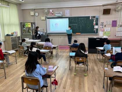 1年生は国語でまなんだスイミーの音読です。ゆっくり大きな声で気持ちを込めて読みます。