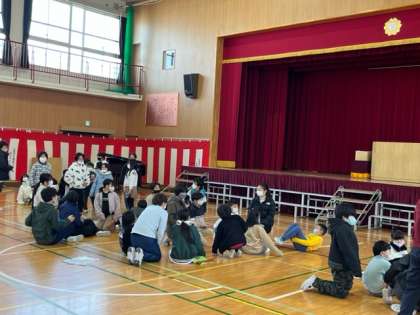 最後にみんなで縦割り班になって、6年生と最後のまるばつゲームを楽しみました。