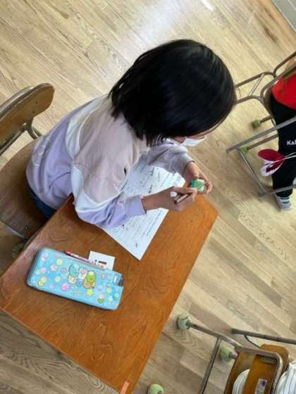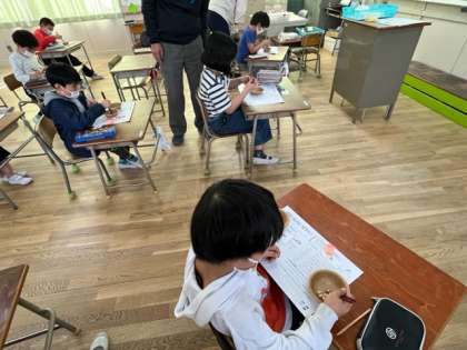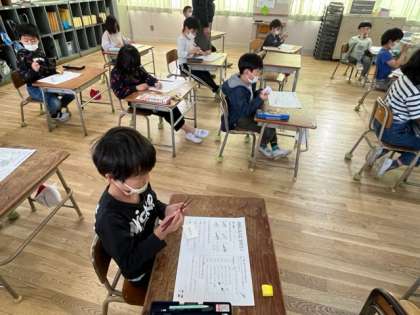 おはしの正しい使い方はとても難しいです。2年生の子ども達が、おはし名人になれるように学習しました。大豆や米をつまむのに苦労しています。
