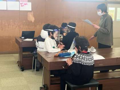 4年生は、音楽の時間に合奏の練習をしていました。個人別、パート別に分かれて練習です。