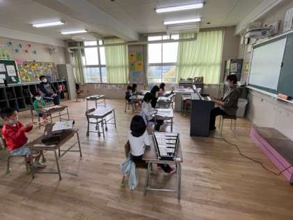 1年生が「小犬のマーチ」の合奏をしていました。ずいぶん上手になりましたね。