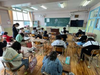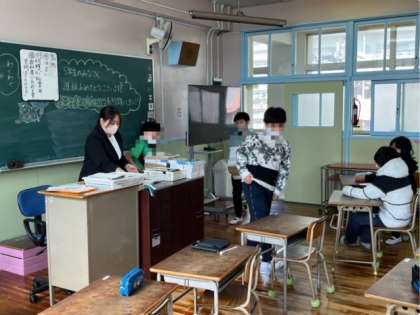 5年生は名札に名前を書いて、連絡帳を書いて、教科書を配ります。着々と新学年の準備が進みます。