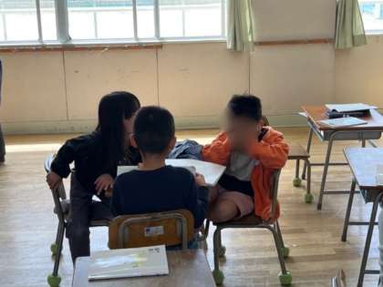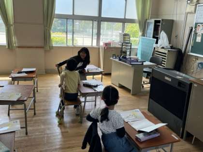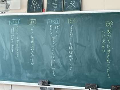 2年生が国語の時間に「友だちの好きなこと」を聞く学習をしていました。きちんとした話し方を学びます。