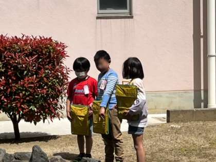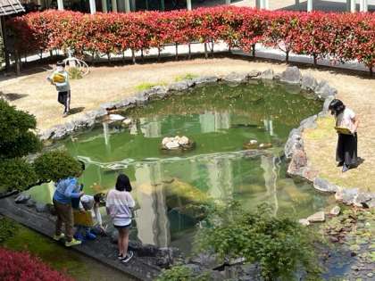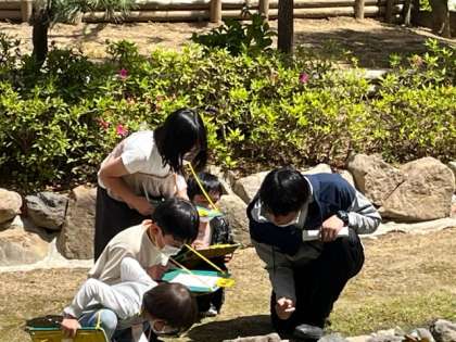 3年生は理科の時間に「春さがし」をしていました。池のほとりでネッシーを見つけたようです。
