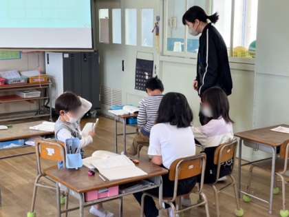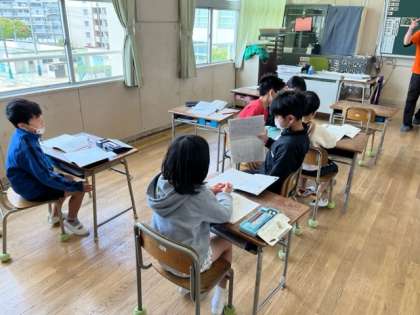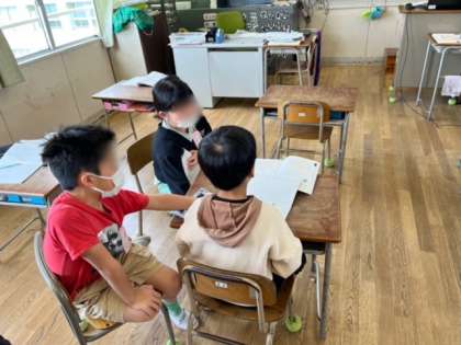 3年生は国語の時間に言葉を整理していました。遊びの種類、必要な物、ルールなどです。さっと3人組になって話し合いをできていました。