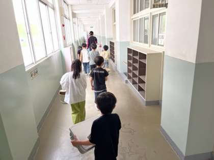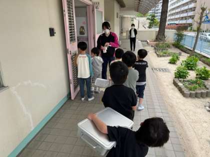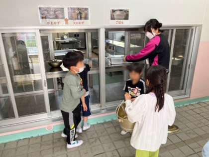 給食の後片付けも全部自分たちでしました。なんでもできるね。