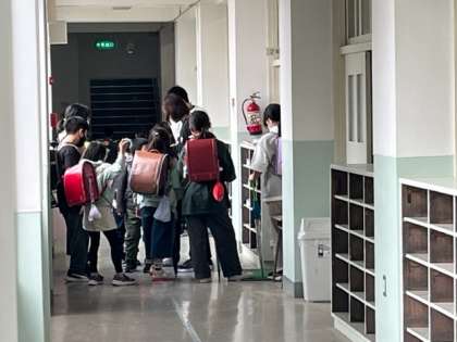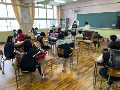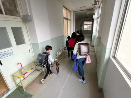 今日は地区子ども会です。緊急時の集団下校の訓練です。