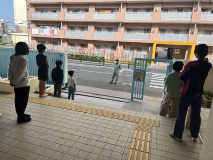 朝から元気に「おはようございます。」とあいさつしていました。今日は1回目で緊張していたようです。