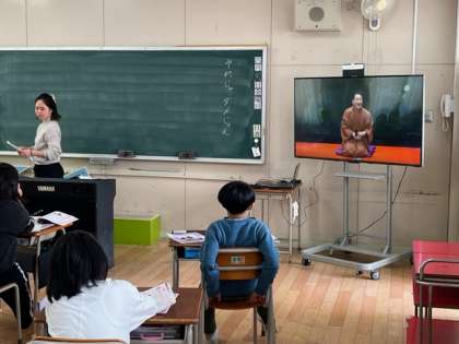 6年生は道徳です。春風亭昇太さんを題材にした内容です。